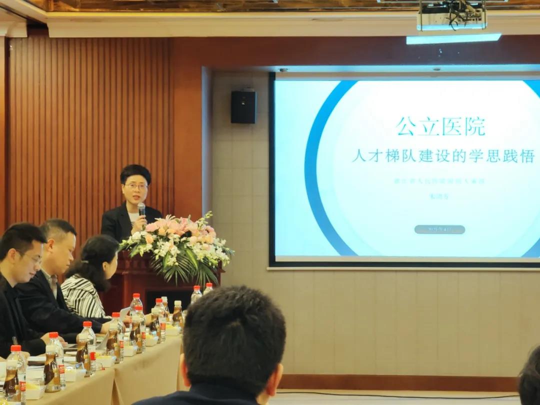 浙江省人民医院人力资源部朱幼芳主任分享的主题是“公立医院—人才梯队建设的学思践悟”,她从人才梯队的定义、人才梯队建设关键点、员工职业生涯管理等方面做了精彩分享。朱幼芳老师强调人才是学科发展的“百年大计”。医院需要不断增强人才队伍建设的自身“造血”功能,做好人才梯队建设,为医院的发展壮大奠定扎实的人才储备基础。