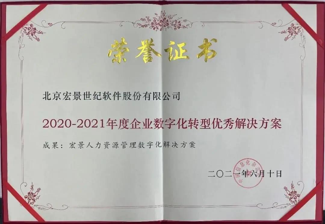 在聚焦国有及大型企业的数字化转型行业大会上,宏景软件摘得“2020-2021年度企业数字化转型优秀解决方案”殊荣,再次证明和肯定了宏景23年深耕人力资源信息化领域、专注国有企事业单位人力资源管理数字化服务取得的经验和成果。