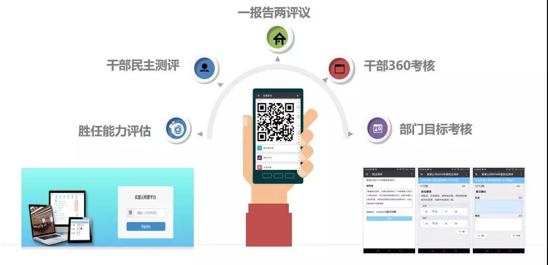 云平台基于互联网、SaaS模式的人才管理平台,平台立足于国有企事业单位,为用户提供基于企业战略的目标管理、领导力评估反馈、胜任力评估反馈、360度考核、民主测评、一报告两评议、民主推荐、同行评议、专业技术人员评价等场景服务,为企事业单位人才选拔、人才盘点、梯队建设、人才发展、价值观考核、年度考核、民主测评、民主推荐等提供了强大有效的技术支撑和管理支撑。