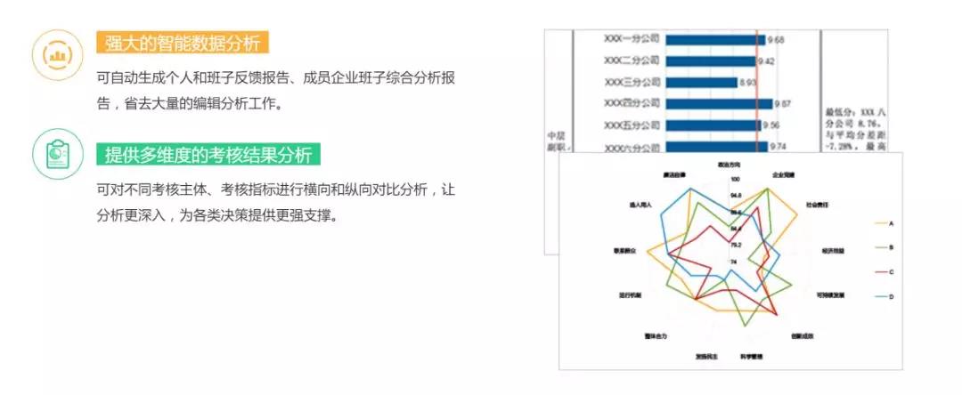 360考核是我国多数企业采用的考核方式,各单位常以月度、季度、年度为频率对员工进行考核,传统手工模式常存在如下问题:① 效率低,涉及人员众多、表格多样,发表、收表、统计分析工作量大,加之工作时间段集中,耗费大量时间精力。② 易出错,考核关系多样、数据统计复杂,容易出现纰漏,而考核涉及员工切身利益,要求绝对准确,工作人员压力大。③ 难控制,评价进行中无法实时了解进度,需要不断催促相关人员;评估主体打分缺乏事前控制,不遵守评分规则,事后补救措施难度大。④ 体验差,手工填表、汇总过程繁琐,参与人员疲于应付、满意度低。异地机构员工考核问题突出,及时性、有效性难以保证,成本高昂。⑤ 不精细,由于没有平台支撑,科学的考核办法却很难完全落地和精细化执行,不能为科学用人决策提供充分依据。