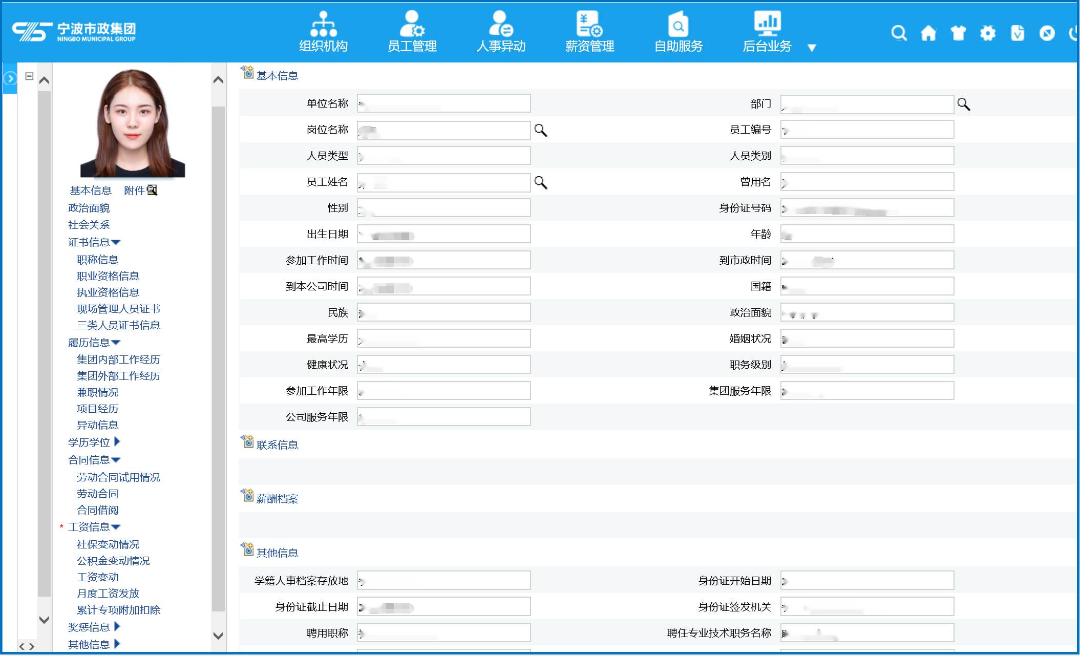 为适应宁波市政集团最新发展形势,实现十四五期间人力资源对集团整体战略的支撑,加强对人力资源的管控,优化人才管理,进一步提高人力资源管理效率和决策能力,以人力资源数字化战略驱动企业数字化转型,集团组织人事部门于2021年4月启动人力资源数字化项目,8月完成项目一期建设。以建设一体化集中管控系统为目标,立足新战略、新起点、新高度,统一核心业务操作流程、加强业务集中管控、实现业务数据的互联互通,成为企业数字化转型的有力抓手。