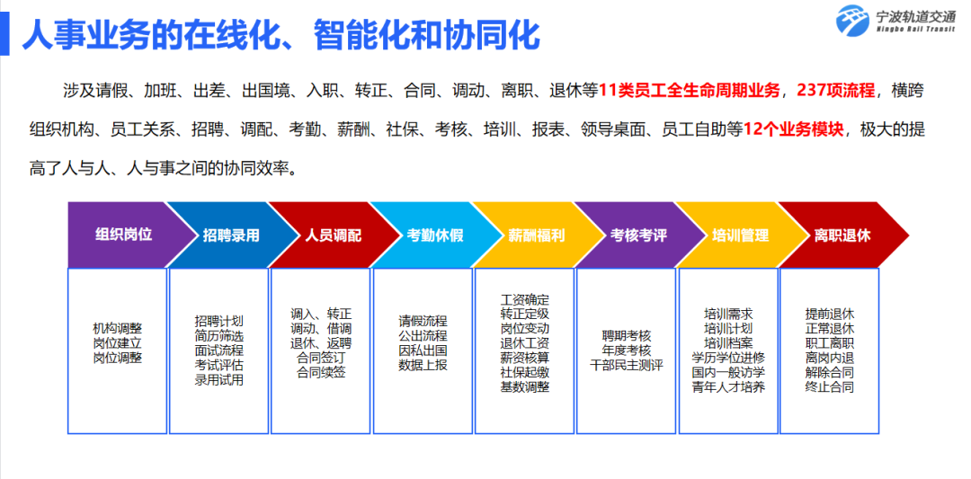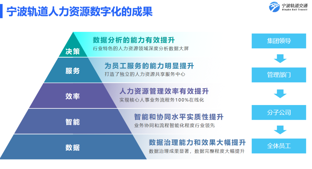 4. 打造人力资源共享服务中心平台,用数字化技术赋能宁波轨道人力资源管理变革,实现管理的转型升级