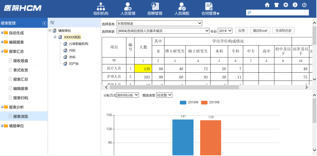 报表管理是组织人事部门重要工作内容之一,每到季末或年底组织人事部都会用一部分时间专门来进行各类人力资源数据统计分析工作,并制作各类报表呈递高层。而高层领导一旦临时提出一个需求或提出一个非常规的需求,组织人事部门往往需要花费大量时间进行统计、分析,此外数据的准确性与及时性无法得到保障。