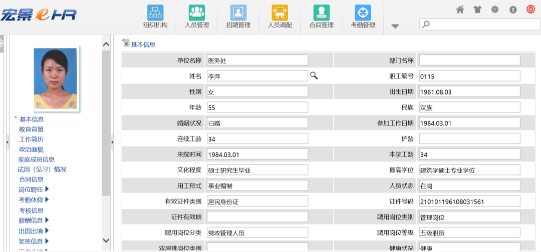 员工信息是人力资源系统建立的基础,人力资源系统建设主要围绕员工展开。通过系统建设对医院岗位、履历、科研等共43个信息集进行优化梳理,并帮助建立常用花名册、统计报表、业务预警50余项。系统通过预警业务,提前对相关工作进行预警提醒,真正实现由“事找人”到“人找事”的转变,提升人事工作者的工作效率。