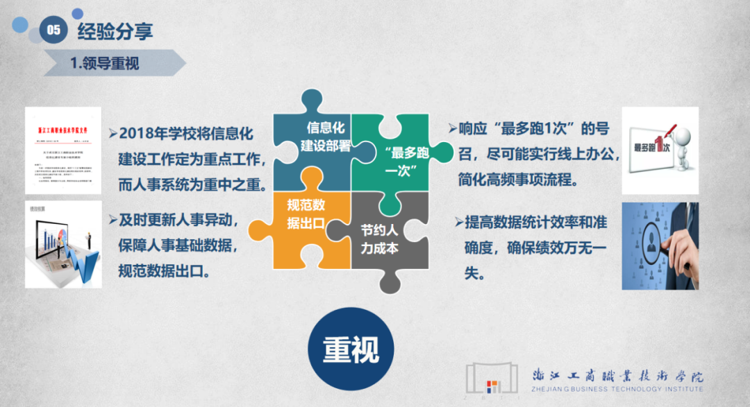 首先,领导重视是成功的信心和决心。一是2018年学校将信息化建设工作定为重点工作,人事系统的建设是重中之重,所以项目推动力就非常高校、给力,上下同欲、共同推进;二是响应“最多跑1次”的号召,尽可能实行线上办公,简化高频事项流程;三是及时更新人事异动,保障人事基础数据,规范数据归口;四是提高数据统计效率和准确度,确保教师绩效管理万无一失,同时也节约了大量的人力投入。