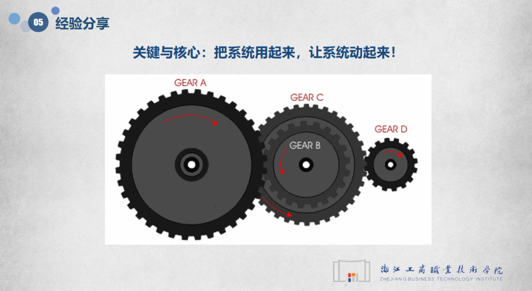 最后,最重要的是要把系统用起来、让系统动起来。在系统建设和使用的过程中,要引导人事部门工作人员多参与到系统的建设和使用,让他们去认识到:通过系统真的可以解决问题、提高效率,这样,人事部门的工作人员会乐于促成系统的使用;在为教师开放系统的时候,也要尽可能让他们觉得使用方便、节省精力。业务人员和教师使用的越多,系统就越完善,逐渐地建立起正循环,让所有参与使用的人都能受益。