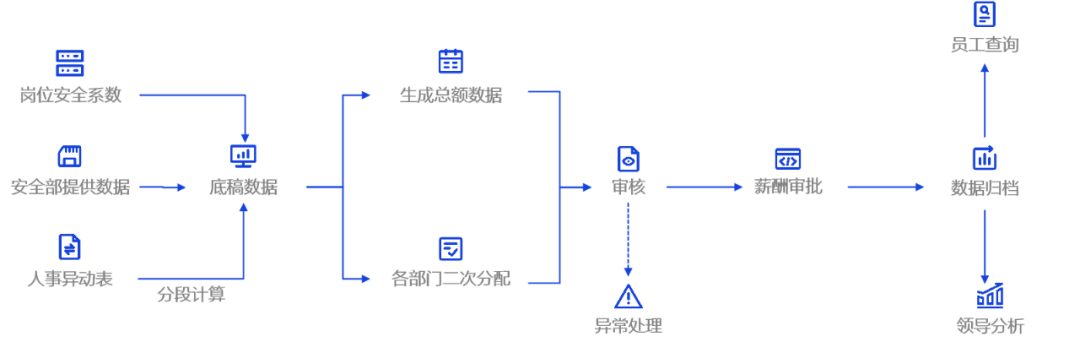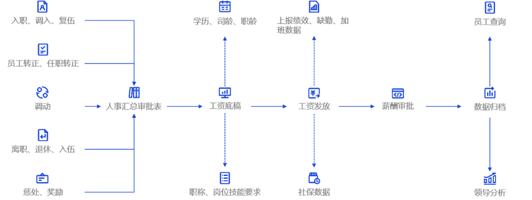 在建设过程中,需要实现人事异动与薪资调整无缝衔接,以便于薪资管理员实时掌握薪资审批进度,及时进行变动调整,实现变动数据的实时核算,大幅度减轻薪酬管理日常的工作量。