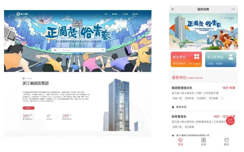 对于浙江国贸而言,打造雇主品牌不仅仅是企业形象及软实力的彰显,更起到吸引高质量人才的作用。伴随Z世代人才步入人才市场,塑造科技化、年轻化的雇主品牌认知变得更加重要。君顾招聘帮助浙江国贸强化品牌形象建设,个性化定制招聘官网和微官网,展现企业文化与综合实力,结合社交媒体的传播和富媒体的内容呈现,更精准地触达目标候选人,吸引人才投递。