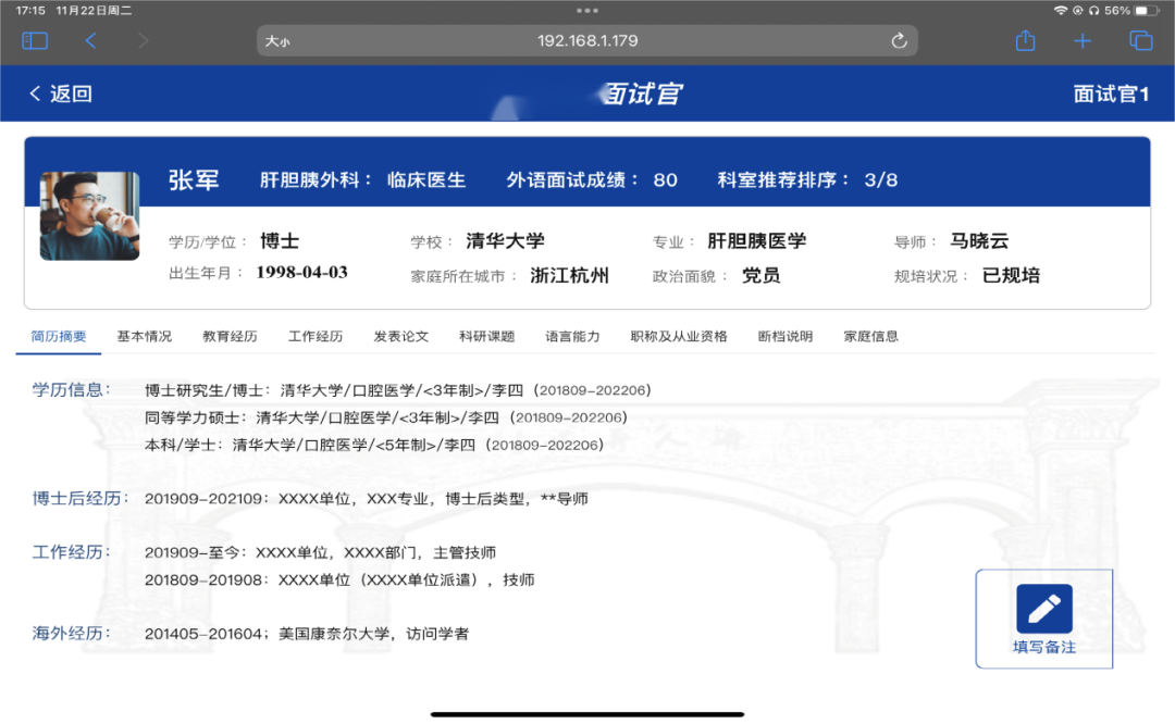 通过PC端和移动端收集的简历,统一汇总到招聘管理端。人力资源部可在管理端对所有简历进行查询和浏览,同时利用系统的智能筛选功能,在大量的简历中迅速筛选合适的候选人,快速过滤无效简历。在筛选合适的简历后,系统会快速分发建立到用人科室,用人科室可以通过移动端快速浏览简历,非常高效。对于应聘者而言,在求职期间往往会面临较多的雇主和大量的简历信息填写,本着“以人为本”的服务理念,招聘系统支持附件简历上传和解析功能,大幅度减轻用户负担,同时也为医院留下好评度。