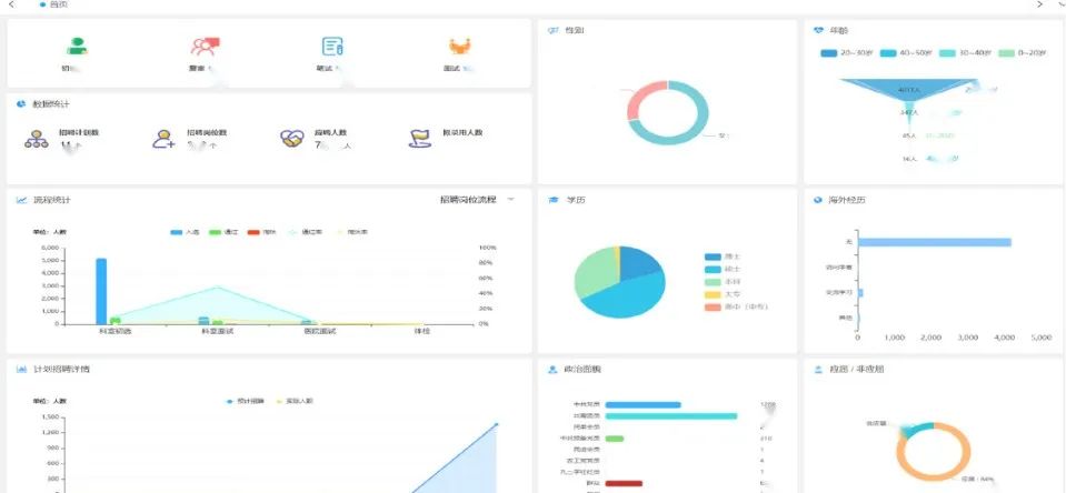 通过招聘全流程的数字化,建立招聘数据分析看板,实现招聘成效实时量化统计,并可对人才投递情况、渠道效果分析、招聘计划完成情况、内推效果、简历处理效率等进行分析,详细展示招聘岗位流程中各环节的入选、通过、淘汰等数据,以及通过率和淘汰率分析,了解候选人所处状态以及各阶段转化率情况,可以进一步提升对招聘工作的总结与复盘。