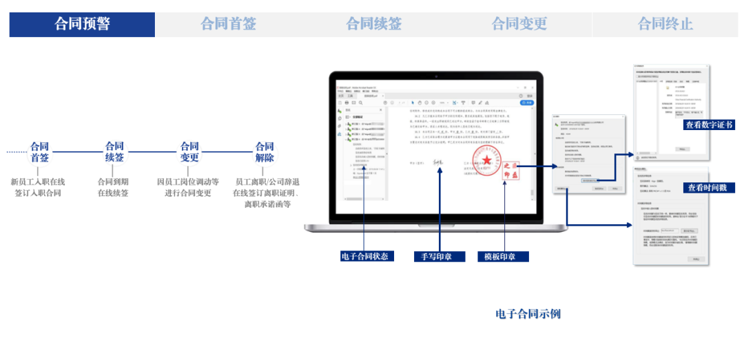 在国家相关政策和数字经济的趋势下,电子合同将以一种全新的方式彻底打破传统纸质劳动合同存在的弊端(比如安全性低、易伪造、存档丢失或者泄露等问题),通过将员工全生命周期的合同签署场景纳入线上管理,实现更加高效、灵活便捷的劳动合同电子化数字化模式,同时合同完成签署后支持即时归档,方便随时查询、管理和下载。