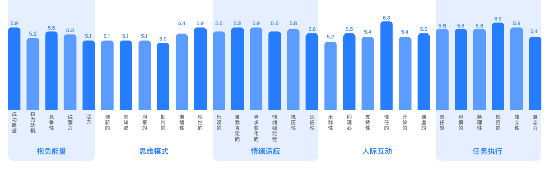 【能力素质】近年来Z 世代群体在职场中所展现的胜任力因子,凸显出Z世代人群的能力素质完成了略强于其他年龄群体的具象提升。一方面,伴随Z世代人群的高学历比重逐年提升,其展现出了愈加完整、成熟的认知水平;另一方面,他们社交需求旺盛,务实又理想,善于进行关系维护,自我意识强烈并渴望信任和尊重,对个人职业生涯充满计划与信心。