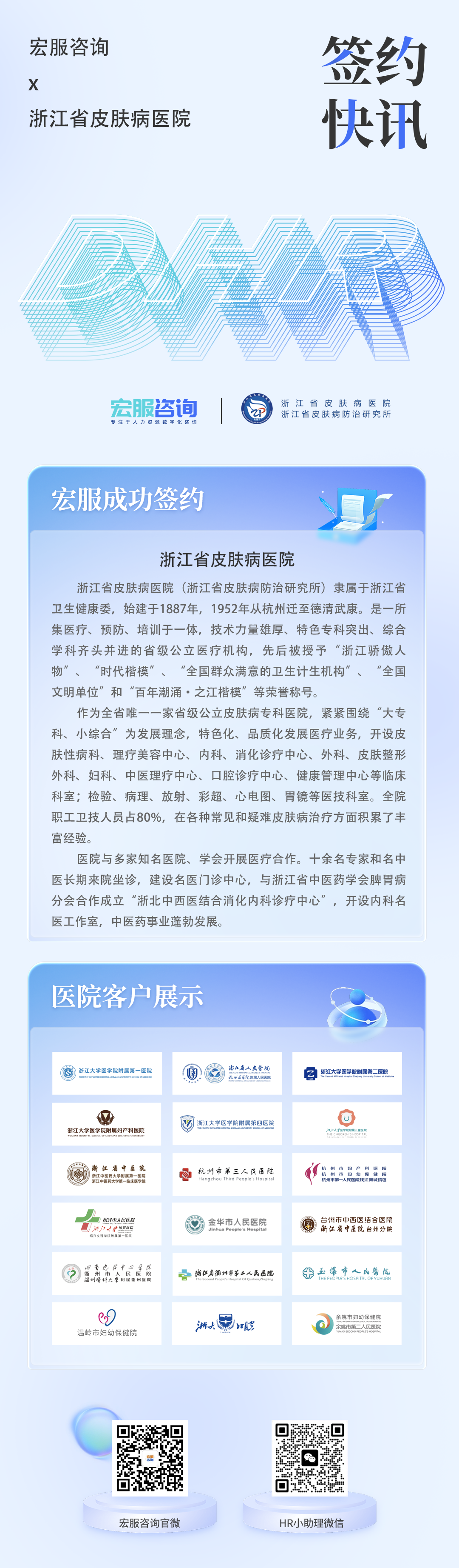 宏服软件成功签约浙江省皮肤病医院人力资源管理系统