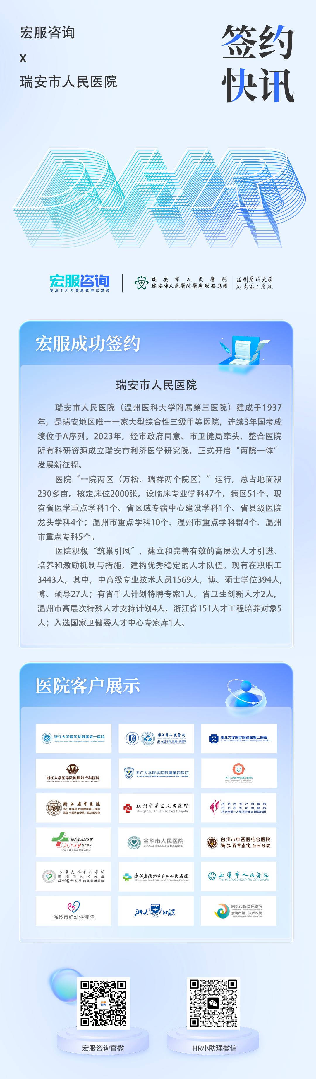 宏服软件成功签约瑞安市人民医院人力资源管理系统