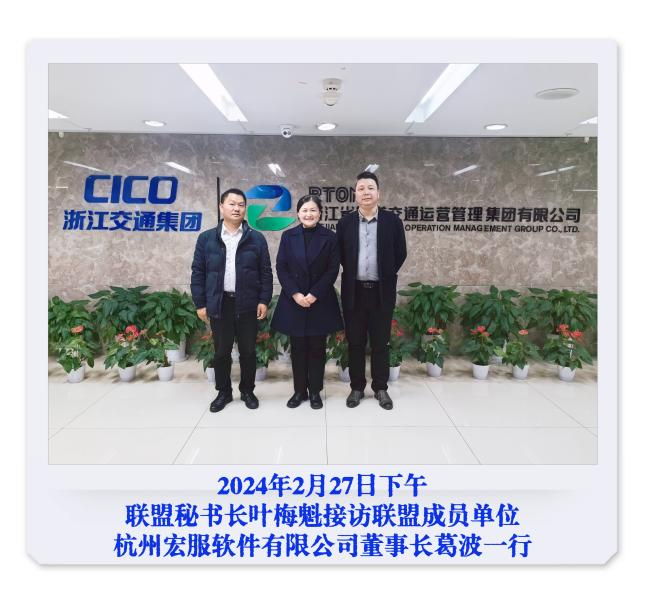 2024年02月27日,宏服软件董事长葛波先生一行拜访浙江省轨道交通运营管理集团有限公司教育培训部部长、浙江省轨道交通产教融合联盟秘书长叶梅魁女士。