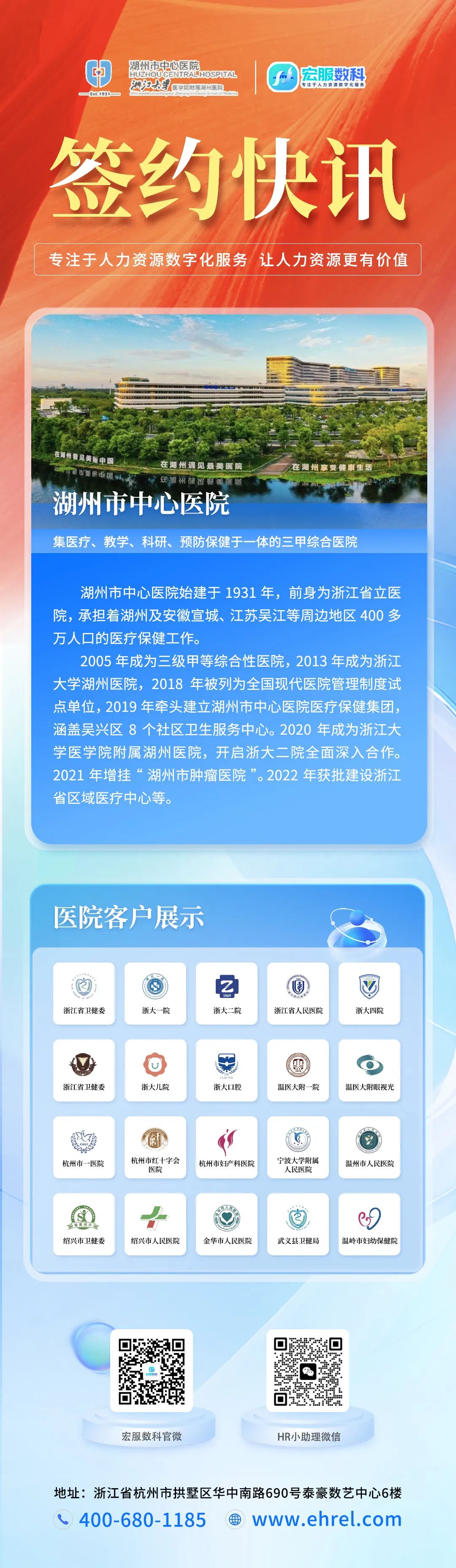 以数赋智,以智促新|宏服数科与湖州市中心医院达成战略合作,携手共建医院智慧人事管理新生态