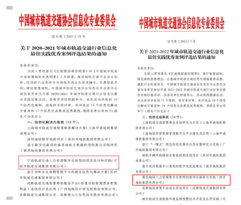 作为浙江省轨道交通产教融合联盟的主席团成员及“数字化工作室”牵头单位,浙江宏服数字科技有限公司(简称“宏服数科”)始终深度参与联盟建设,并凭借在轨道交通人力资源数字化领域的长期实践,积累了丰富的行业案例与成果。公司已成功为宁波轨道、南京地铁、温州铁投、金温铁路、绍兴地铁、金华轨道、京越地铁、杭海城际、苏州地铁等十余家行业企业提供人力资源数字化系统建设与服务。其中,为宁波轨道与南京地铁打造的数字化系统荣获【中国城市轨道行业信息化最佳实践优秀案例】,并与南京地铁联合研究发布《中国城市轨道交通行业人力资源数字化转型现状调研报告》,为推进行业人力资源数字化发展提供了重要参考与实践支撑。