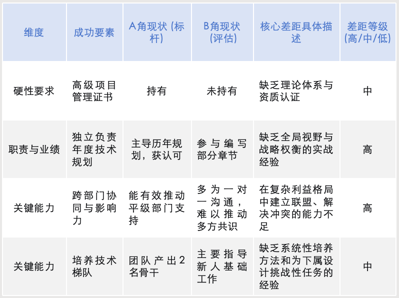 在对比A/B角前,必须首先明确,这个岗位要取得成功,需要哪些具体的要素。这份画像是差距分析的基准。