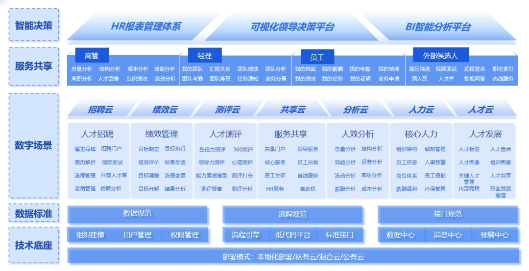 服务对象转变:从“赋能HR”向“赋能各层级组织的管理者”转变;核心目标转变:从“HR日常管理”向“助力管理者带队打仗”转变;平台支持转变:从“HR操作线上化”向面向用户的“管理场景端到端打通”的转变。