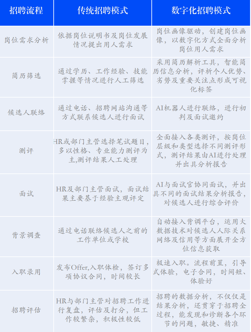 伴随人力资源数字化转型进程的不断推进,数字化技术已融入至企业人力资源管理工作的诸多实践当中。在企业人才引进工作中,数字化技术正与招聘工作紧密结合,深度赋能相关环节的搭建与重塑,而致力于构建数字化招聘模式与进程的企业正完成与传统招聘模式的效能分割。传统的招聘模式和数字化招聘模式到底有何关联?
