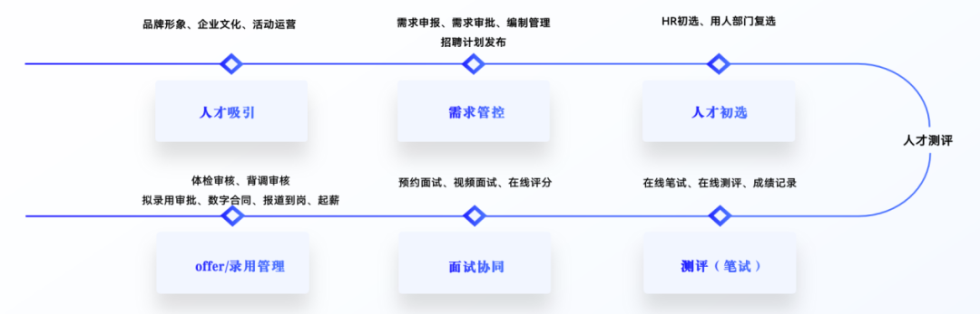 作为人才需求量较为庞大的集团型企业,在实际的招聘流程中会浪费许多无效时间,同时候选人在招聘流程上的应聘体验塑造决定了对企业的第一印象。因此,招聘流程的每一环节设计都面临着较高的响应要求。企业需依次实现招聘流程的设计与拉通,并根据实际业务流程进行调整,最终实现招聘业务场景全覆盖。