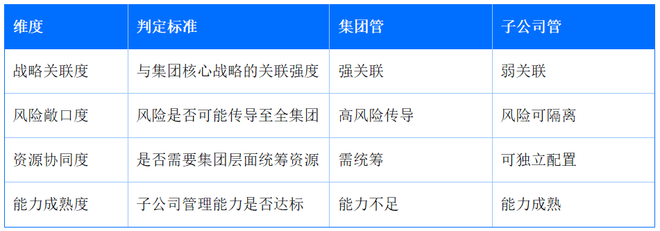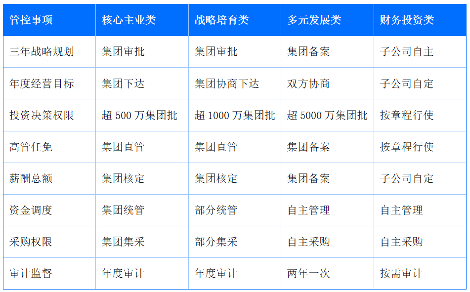 在每个维度上,都要针对不同类别的子公司,明确“谁决策、谁执行、谁监督”的权限边界。
