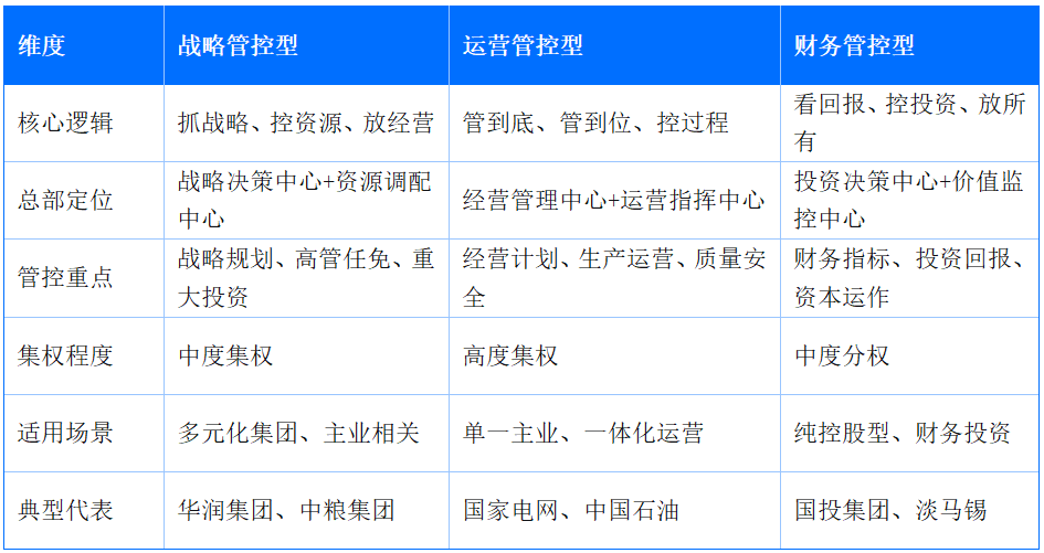 三种模式没有绝对的优劣之分,关键在于是否适配集团的战略定位、业务组合和管理能力。实践中,多数大型国企集团会采用“混合模式”——对不同类型的子公司实施差异化管控。